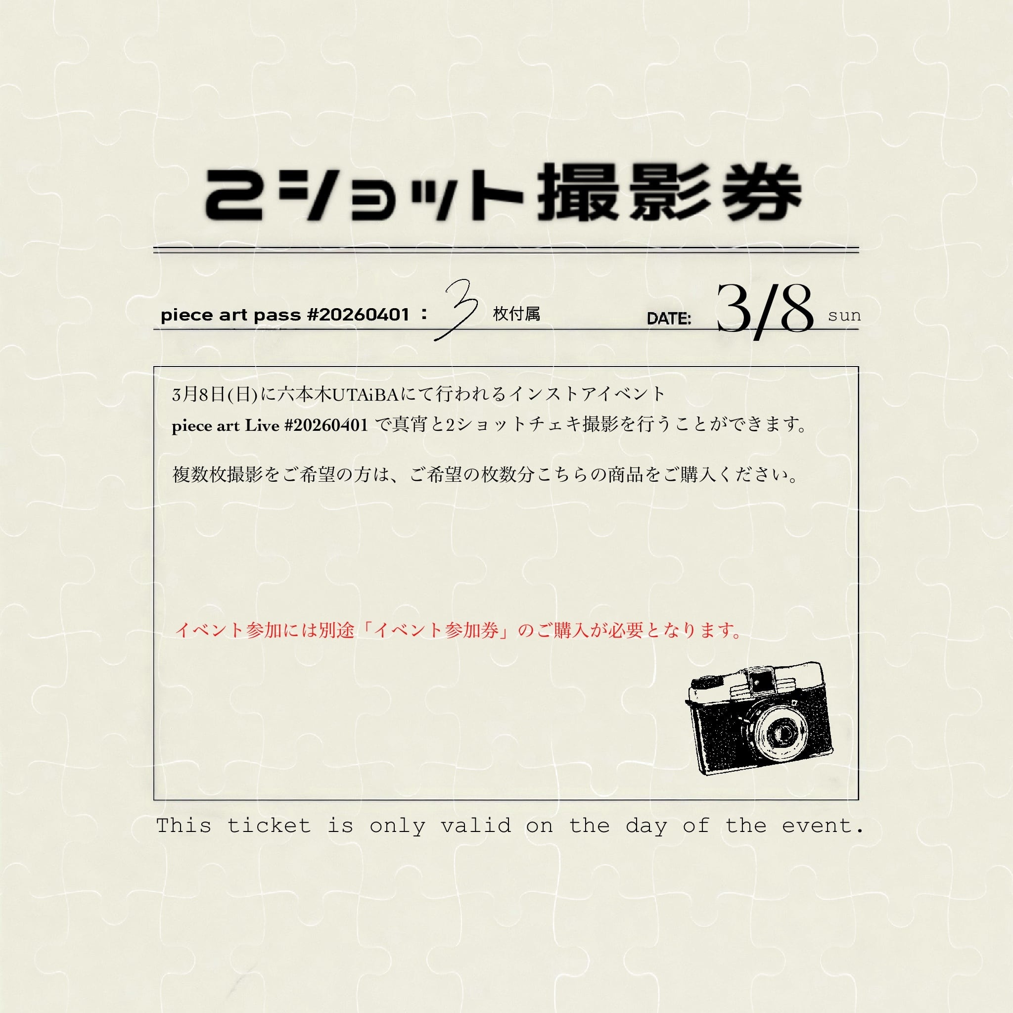 こちらの商品はpiece art Live #20260401への≪3piece支援≫商品となります。イベント参加時に「piece art pass #20260401」を3枚お渡しします。